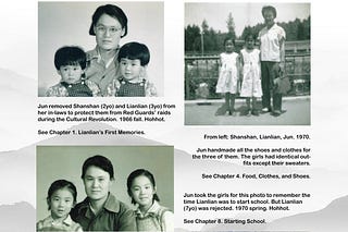 Jun removed Shanshan (2yo) and Lianlian (3yo) from her in-laws to protect them from Red Guards’ raids during the Cultural Revolution.